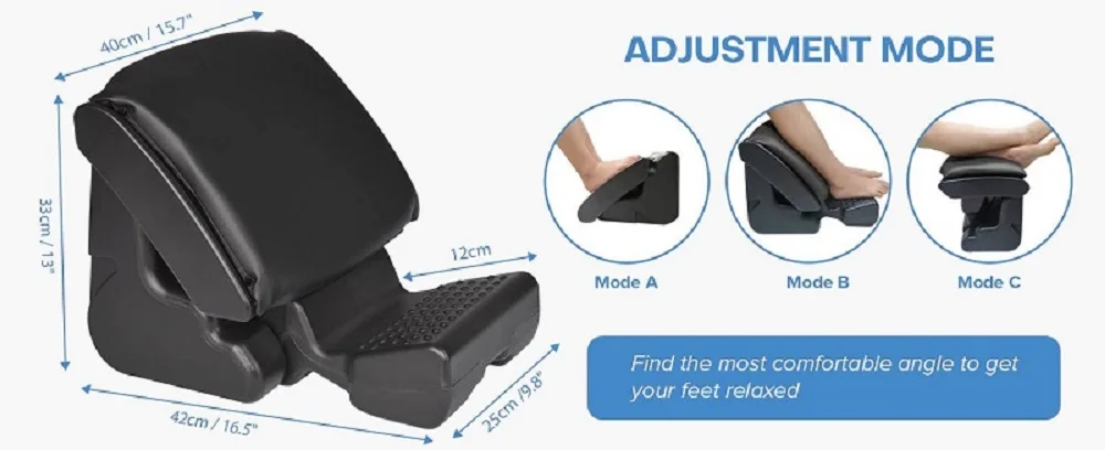 Home Office Under Desk Car Footrest Ergonomic Foot Stool Angle Height Adjustable Foot Rest with 3 Functional Modes